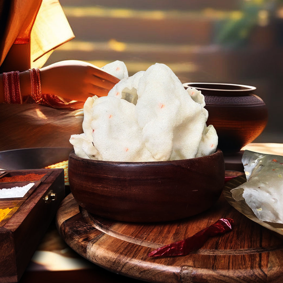 Savor the essence of Thamirabarani with True Traditions-Sri Varaha Foods' Javarasi Vadam, meticulously crafted using a blend of rice flour, sago flour, green chilies, cumin seeds, and a hint of lemon salt. Each crispy bite is a tribute to South Indian tradition and flavor.