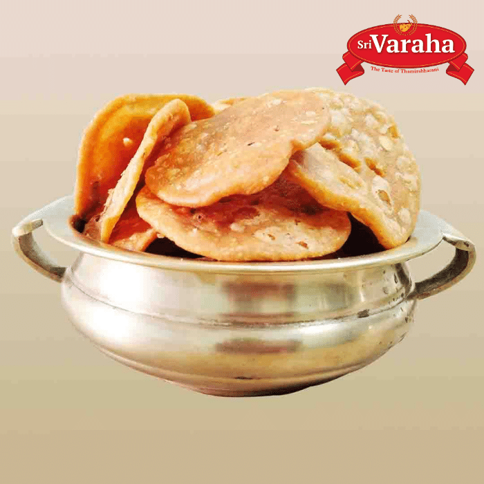 Experience the irresistible crunch of True Traditions-Sri Varaha Foods' Thattai, made with the finest ingredients including parboiled rice, urad flour, and a delightful blend of spices. Infused with the authentic flavors of Thamirabarani, each bite transports you to the heart of Tamil Nadu's culinary heritage.