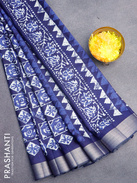 Chappa saree blue and cream with floral butta prints and madhubani printed border