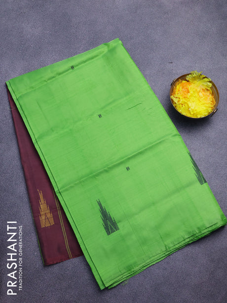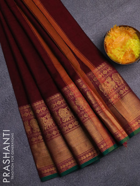 Narayanpet cotton saree maroon and green with plain body and long annam zari woven border