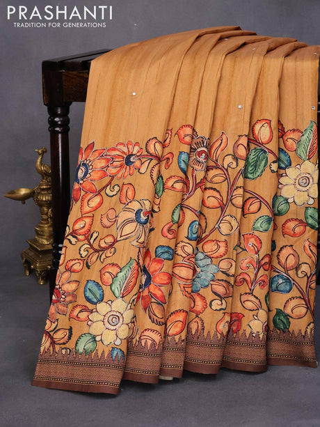 Semi jute silk saree orange and beige with allover floral prints woven buttas and woven border