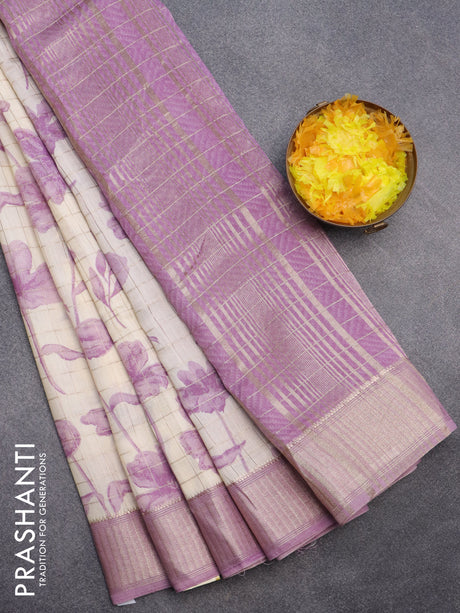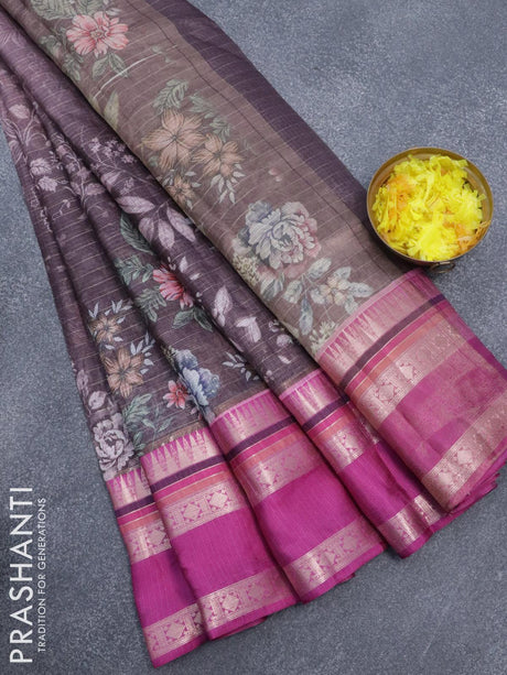 Crushed tissue saree grey with allover digital prints and zari woven border