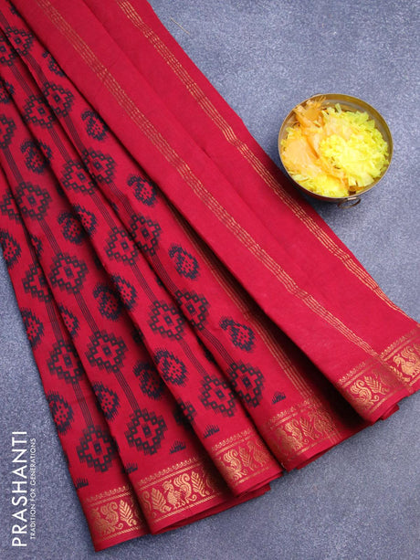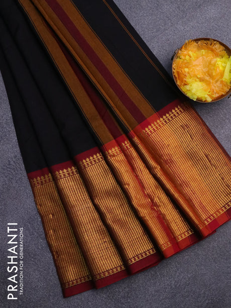 Narayanpet cotton saree black and maroon with plain body and long zari woven border