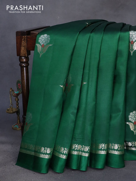 Banana pith saree parrot green and maroon with thread woven buttas in borderless style