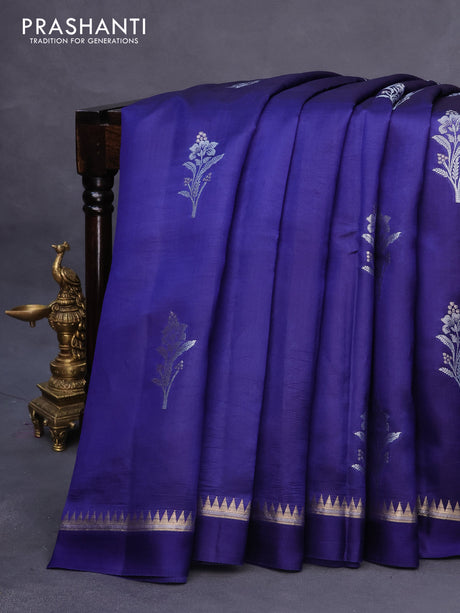 Semi crepe saree deep purple with thread woven buttas and thread woven border