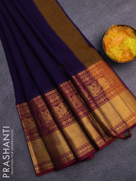 Narayanpet cotton saree deep violet and maroon with plain body and long annam zari woven border