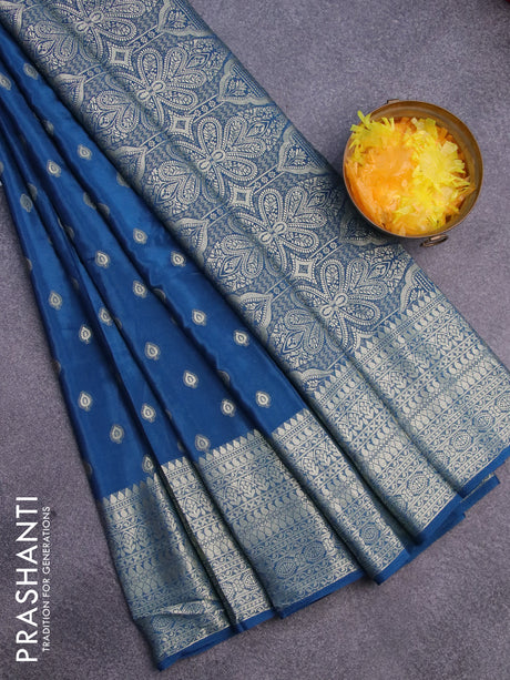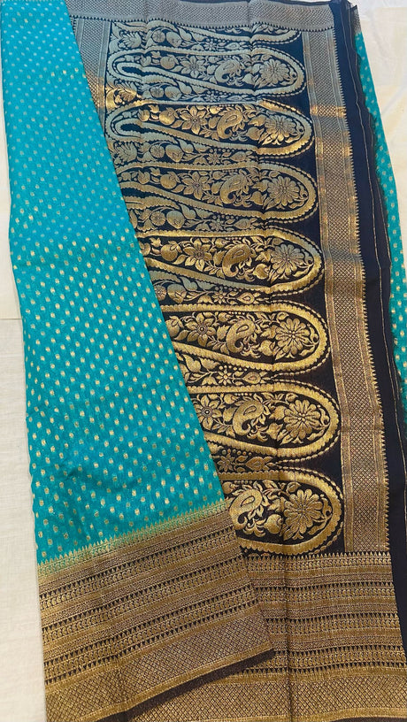 Semi crepe saree peacock blue with thread woven buttas and thread woven border