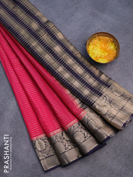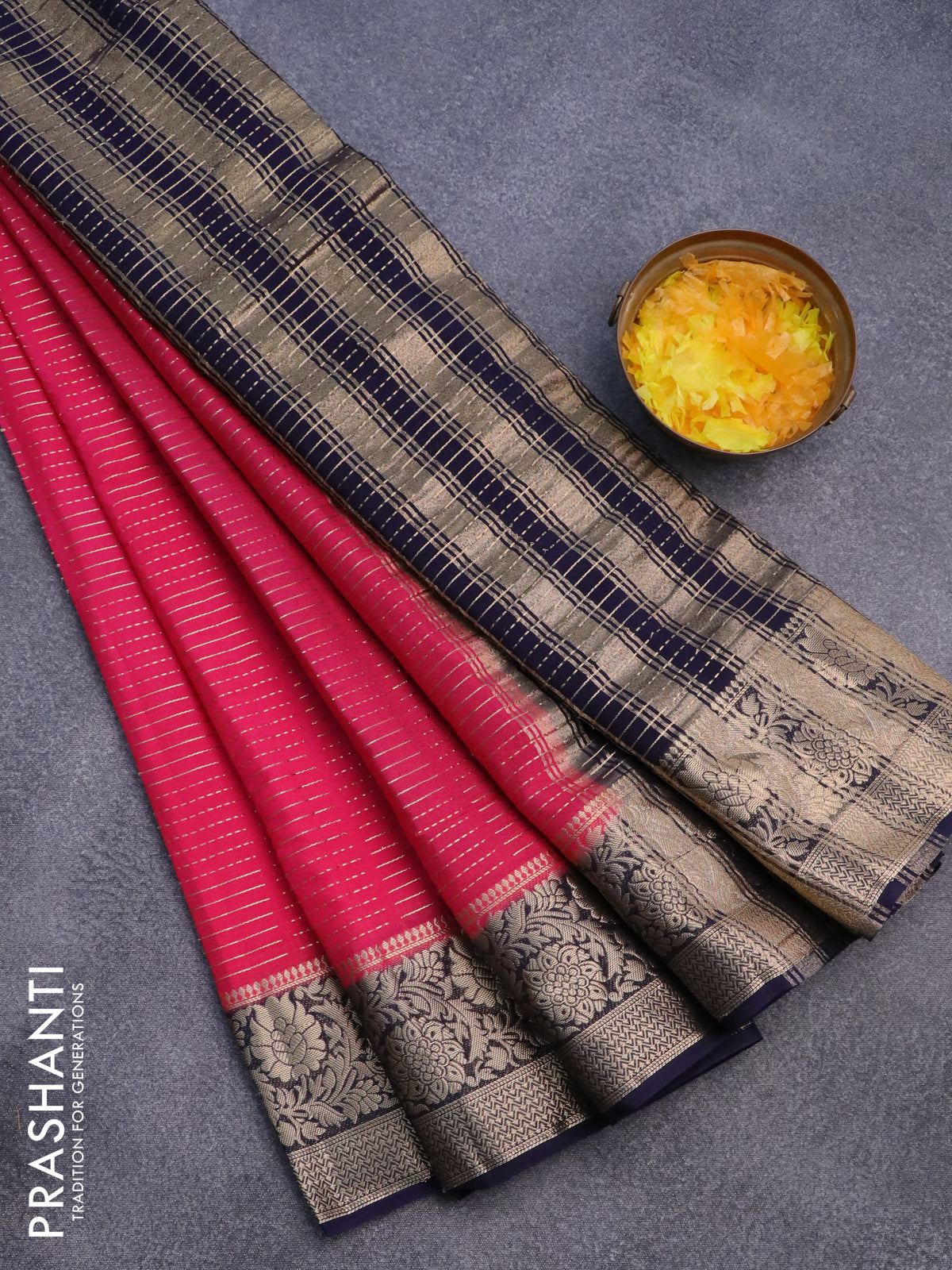 Semi crepe saree pink and navy blue with allover zari weaves and zari woven border