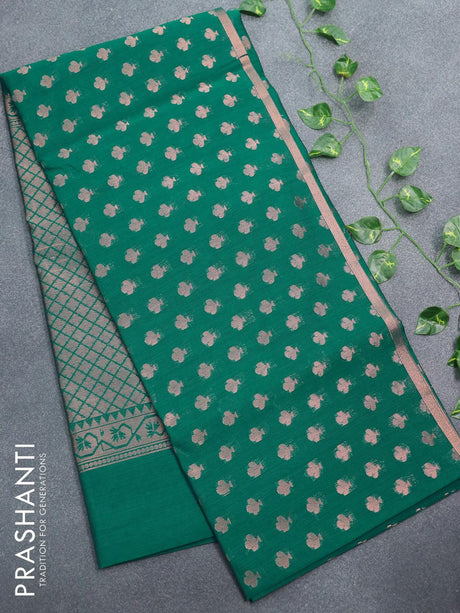 Banarasi semi cotton saree maroon with copper zari woven buttas and piping zari woven border