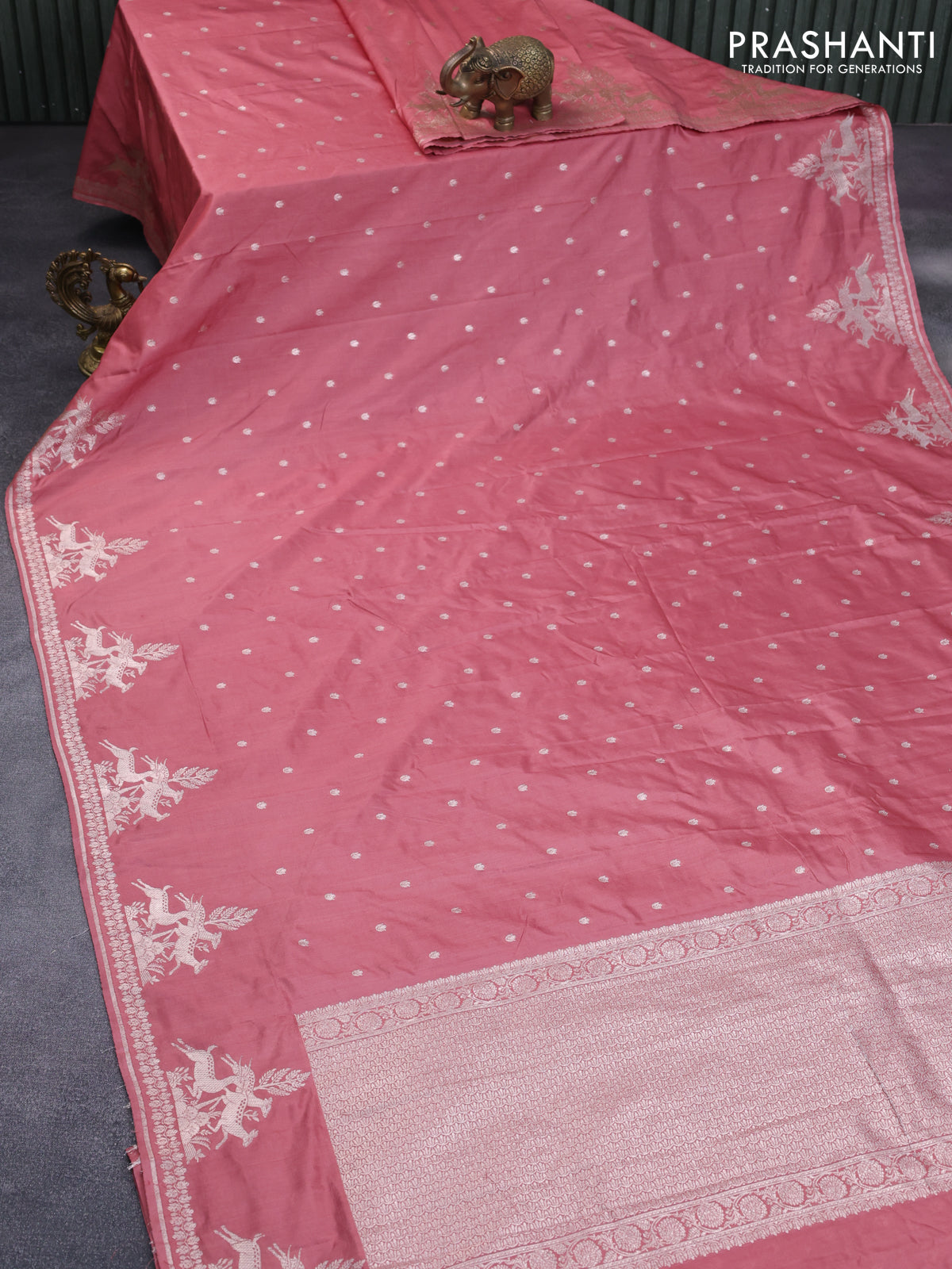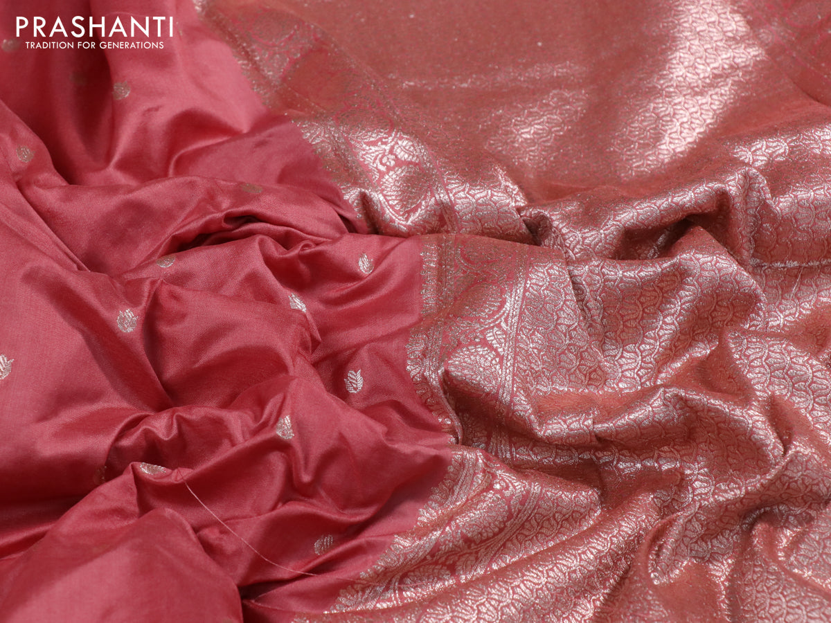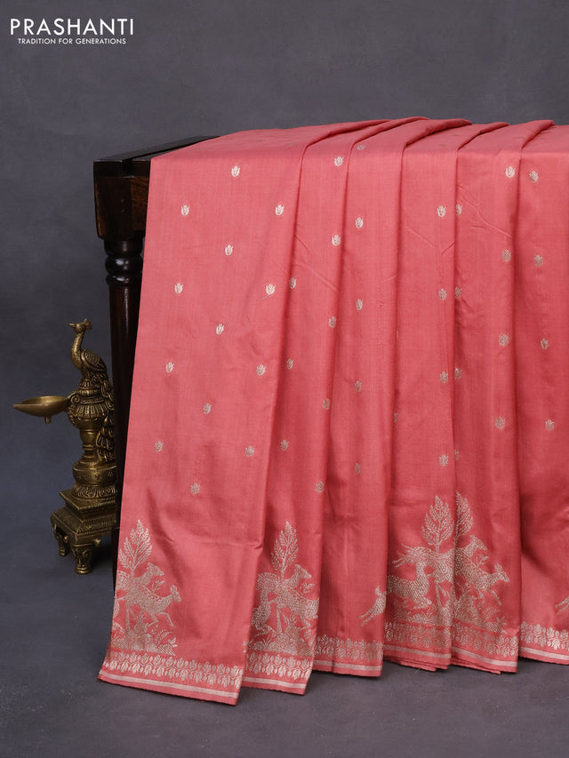 Banarasi semi katan silk saree peach shade with allover zari woven buttas and zari woven border