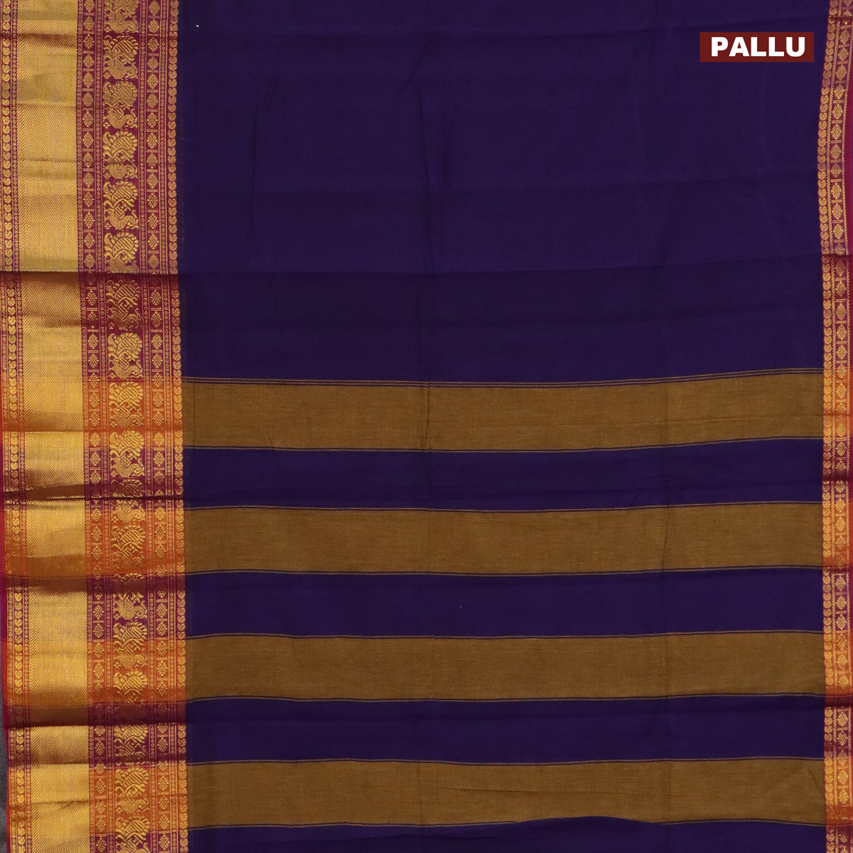 Narayanpet cotton saree deep violet and maroon with plain body and long annam zari woven border