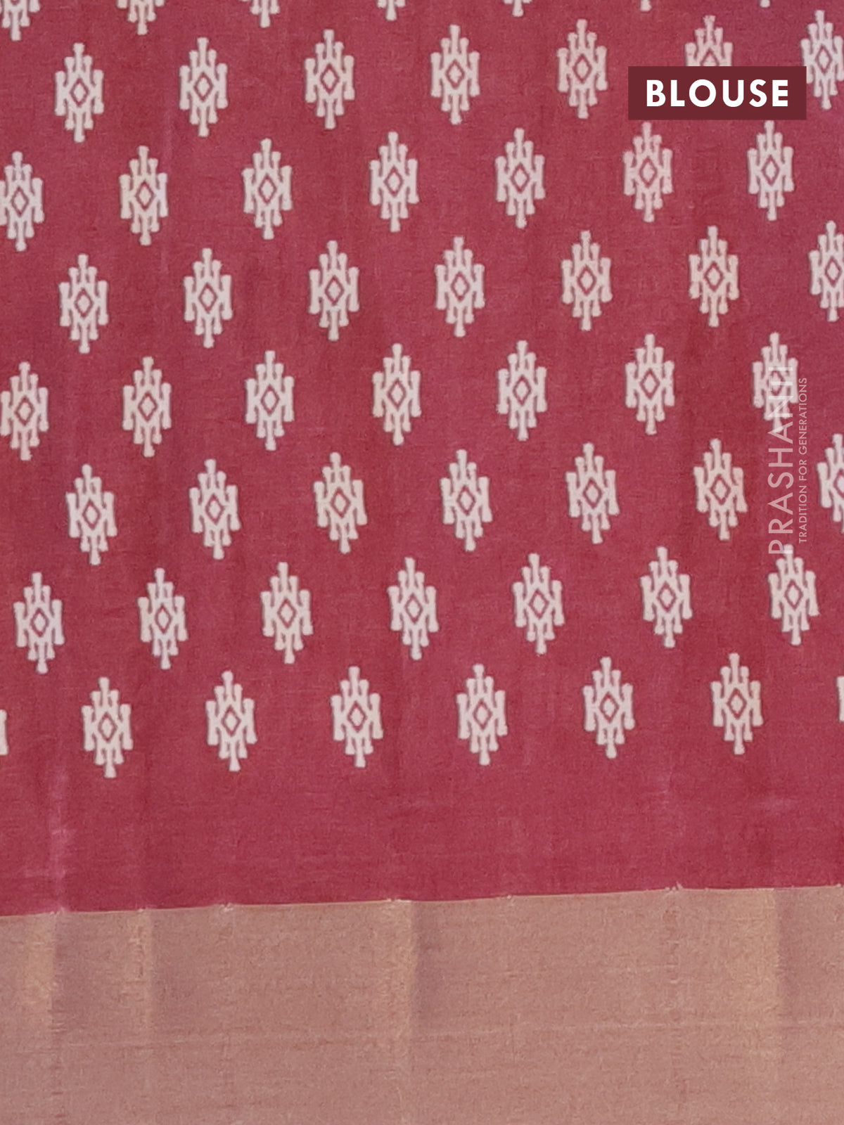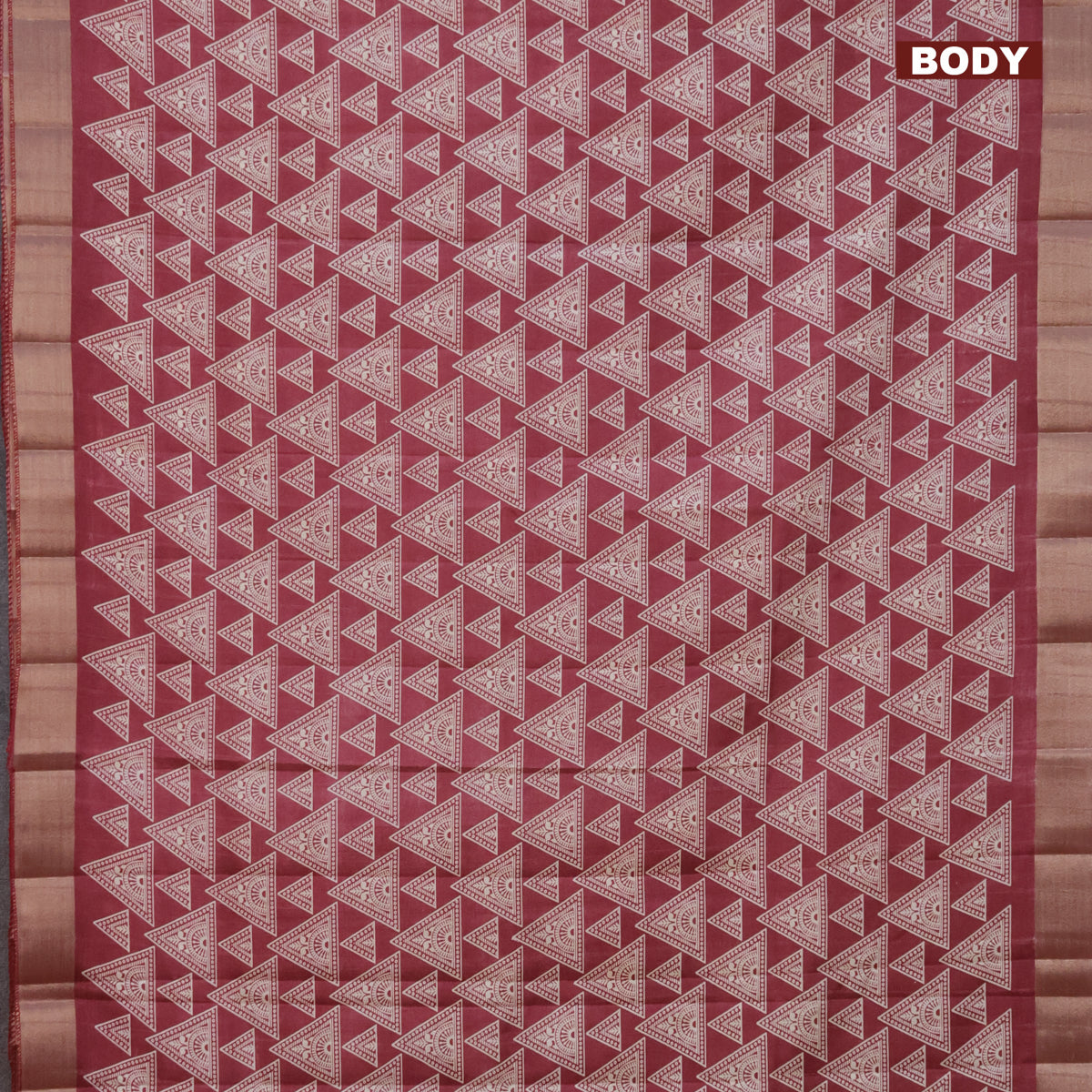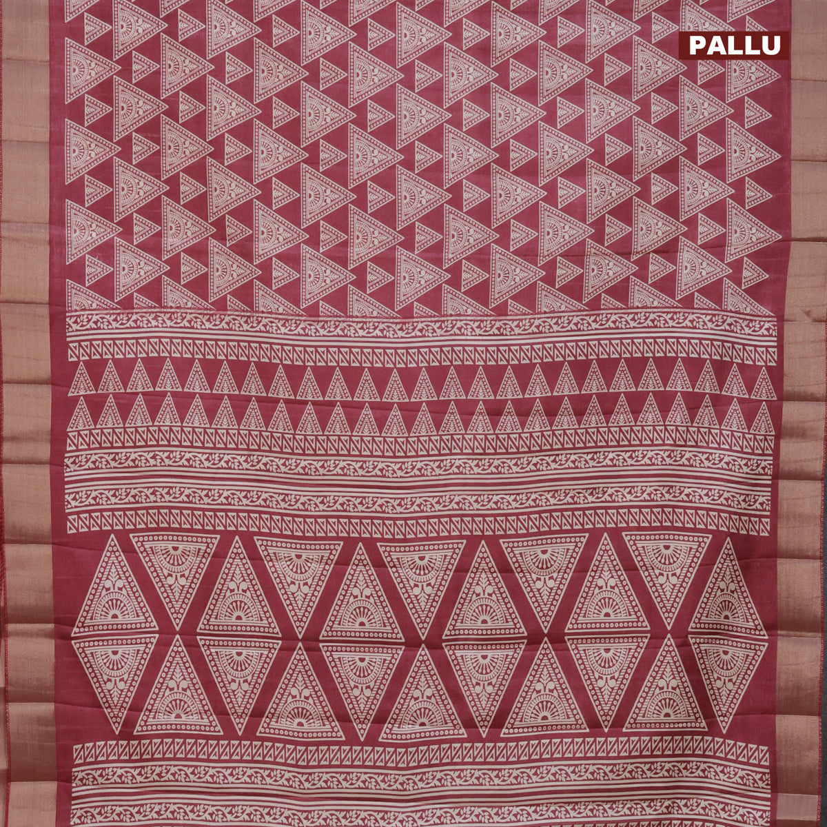 Semi tussar saree maroon with allover geometric prints and zari woven border