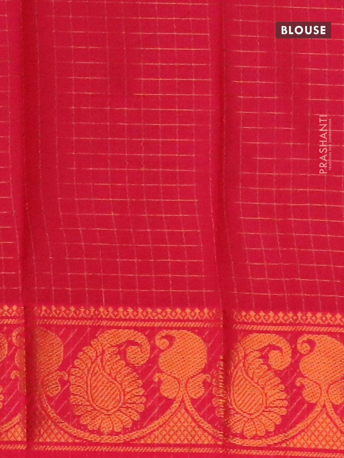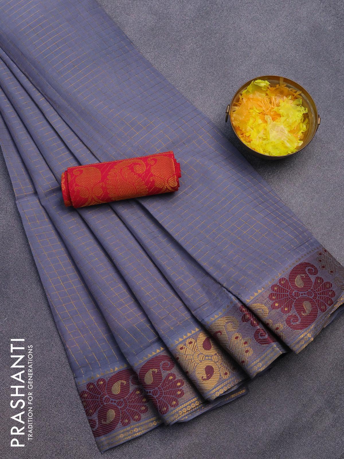 Sungudi cotton saree grey and pink with allover zari checked pattern and thread & zari woven border with separate blouse