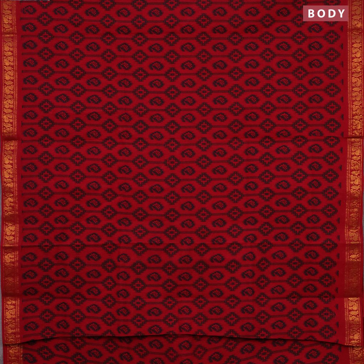 Sungudi cotton saree maroon with allover prints and annam zari woven border without blouse
