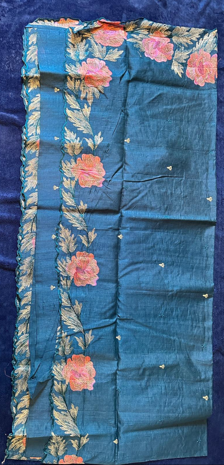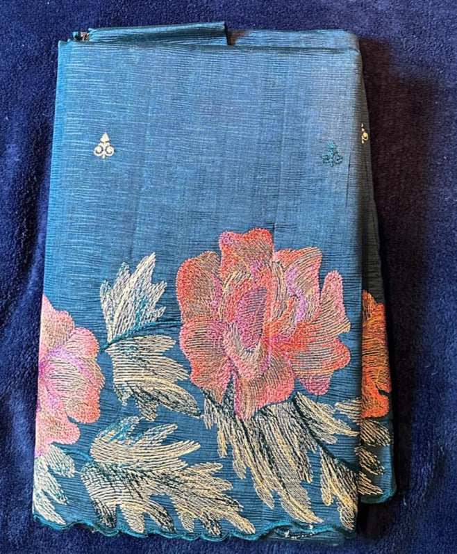 Crush Embroidery Sarees - Blue is backordered and will ship as soon as it is back in stock.