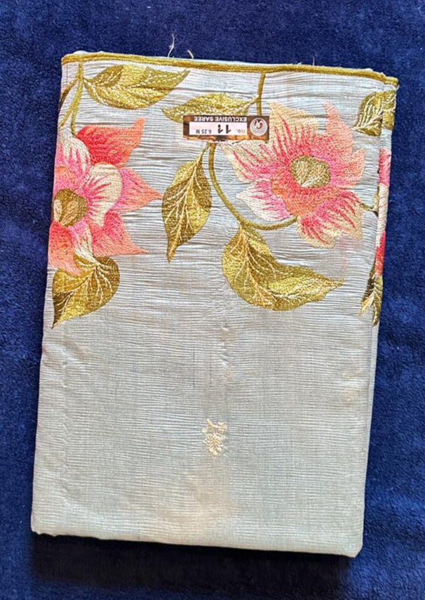 Crush Embroidery Sarees - Sky Blue is backordered and will ship as soon as it is back in stock.