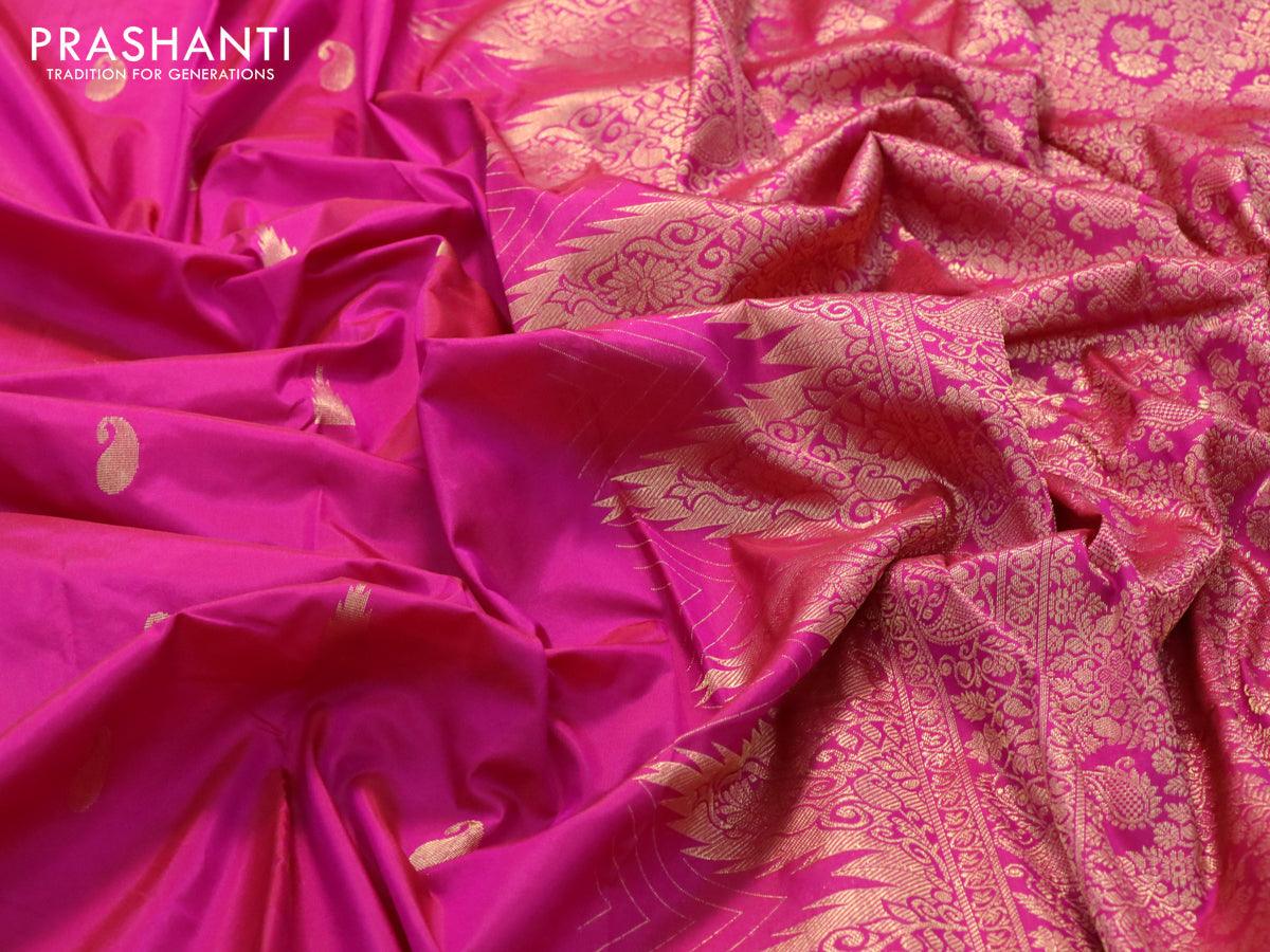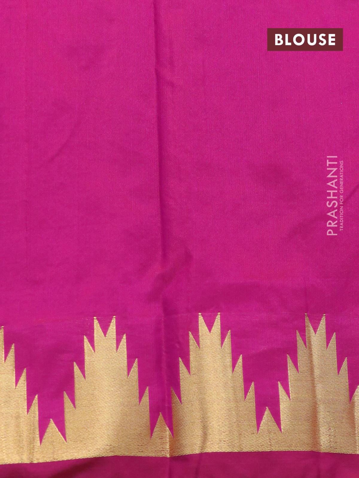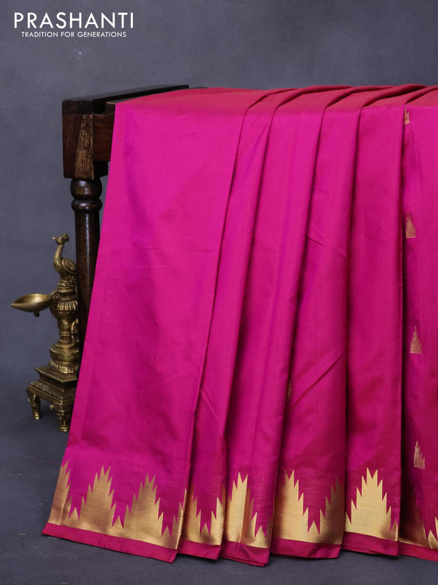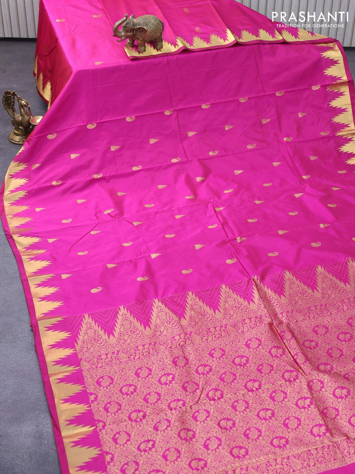 Kanjivaram silk saree pink with temple & paisley zari woven buttas and temple design zari woven border
