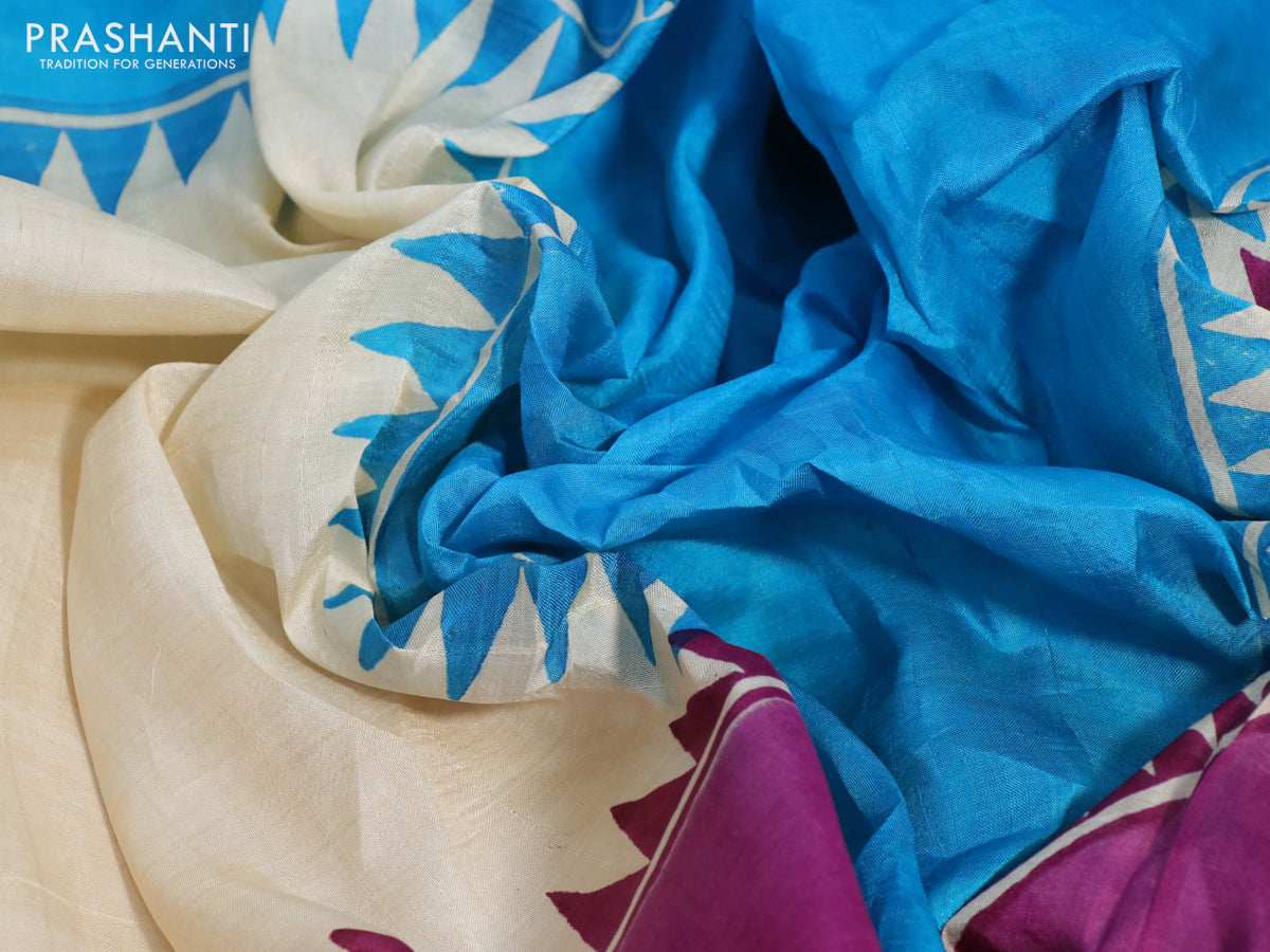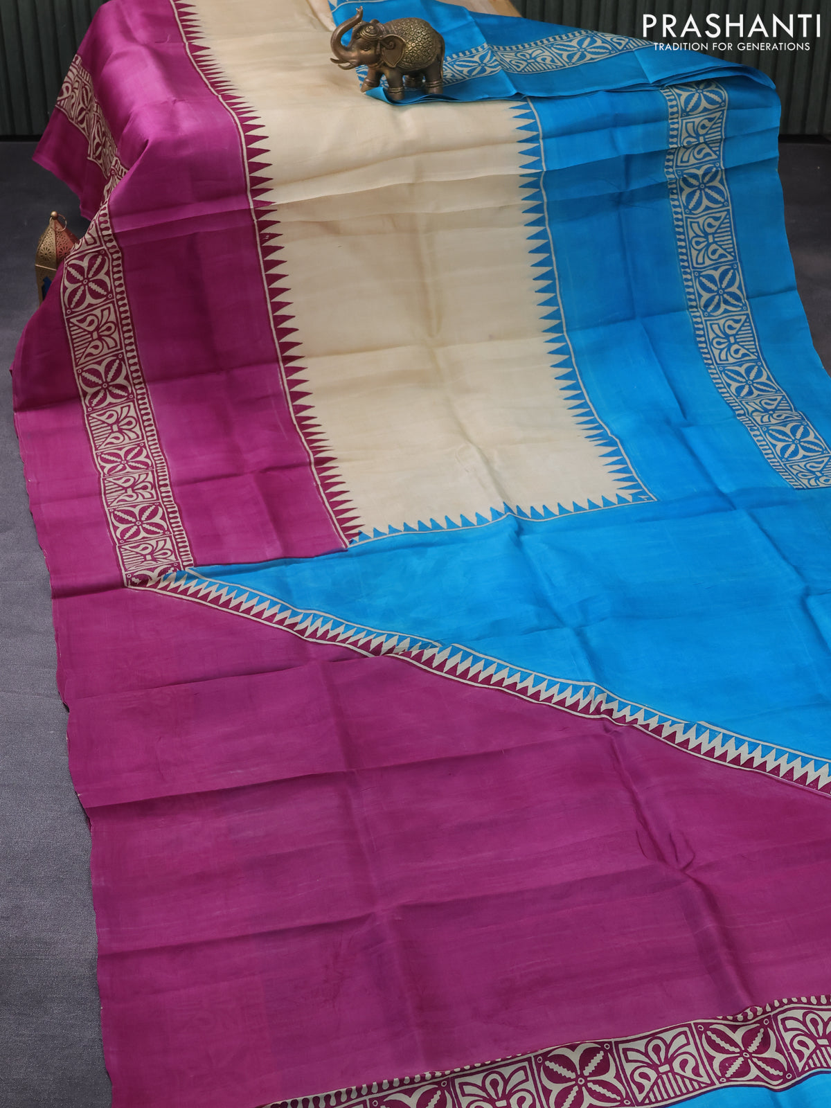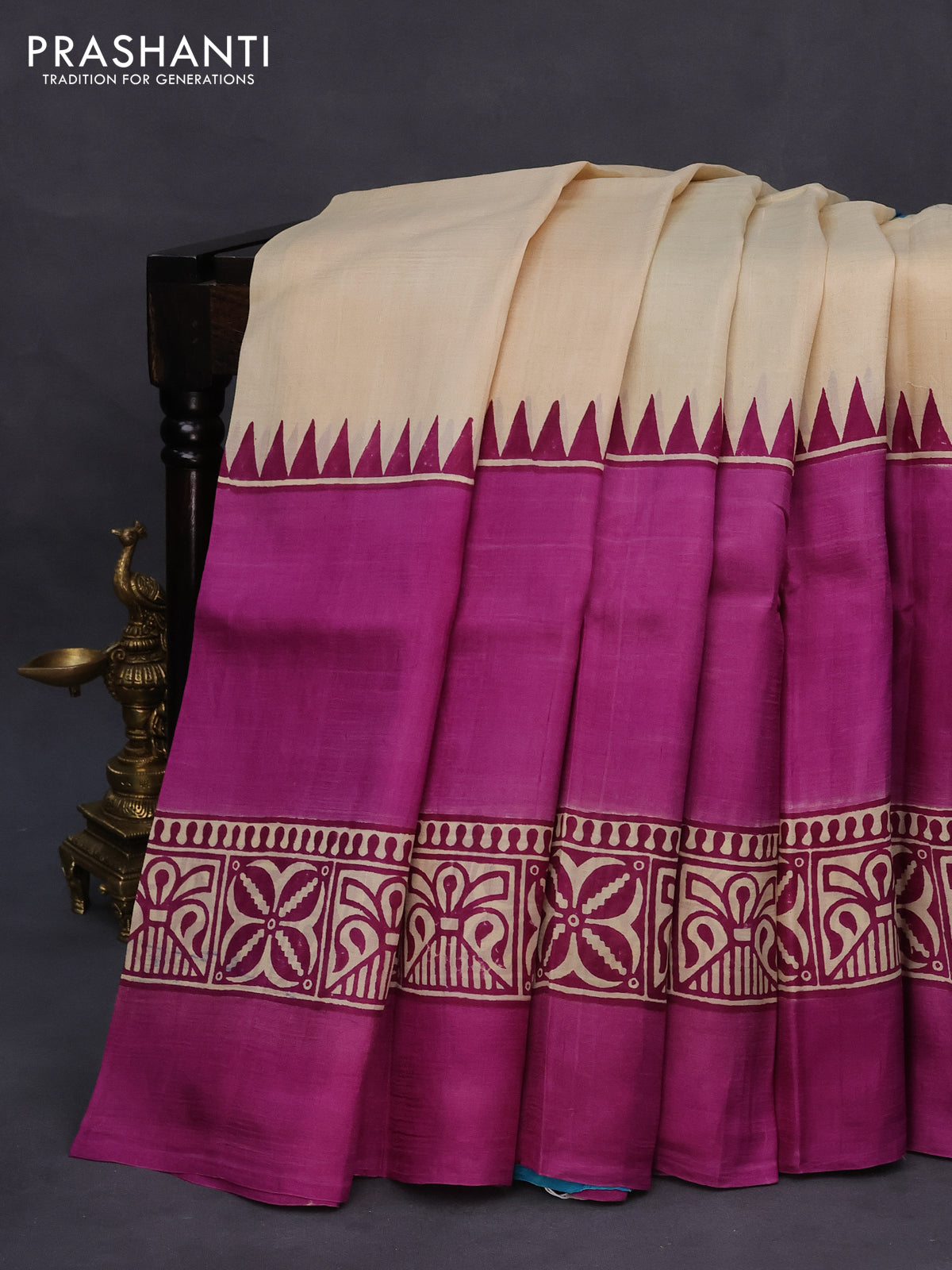 Bishnupuri silk saree cream with plain body and ganga jamuna border