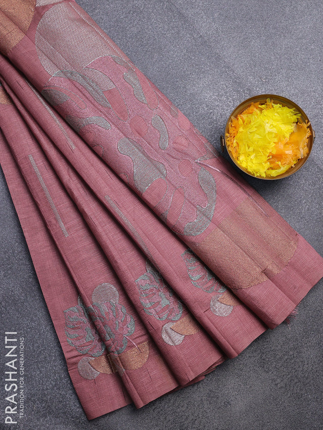 Crush embroidery saree pastel maroon shade with allover embroidery work buttas in borderless style