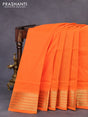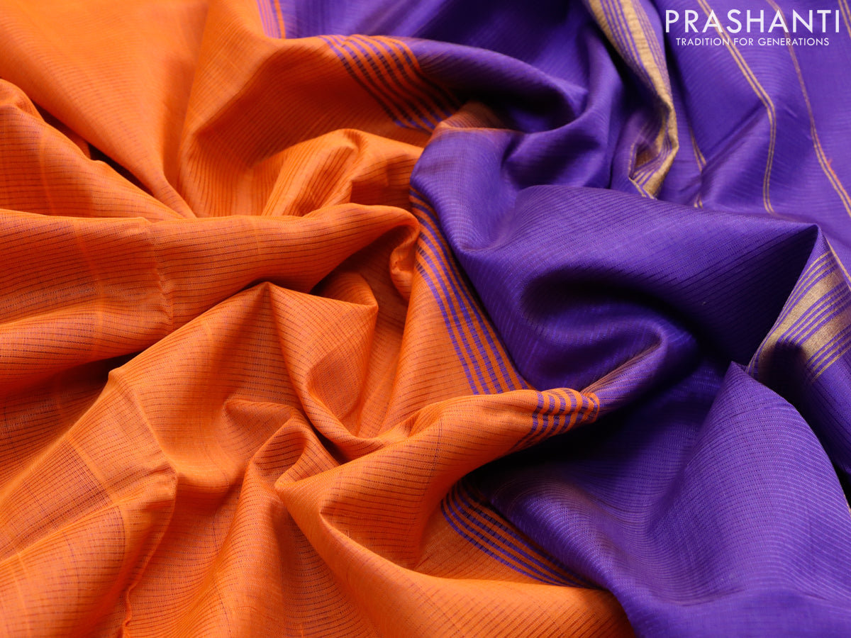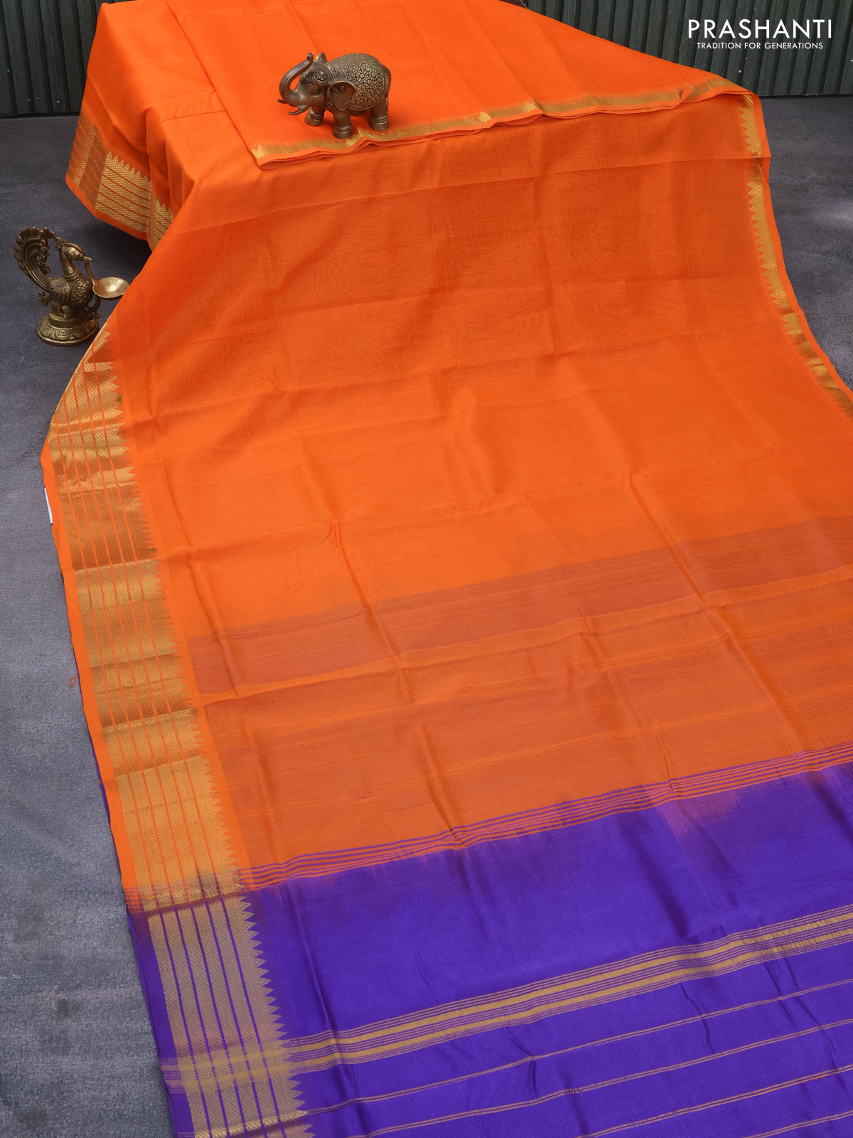 Mangalgiri silk cotton saree orange and blue with plain body and zari woven border