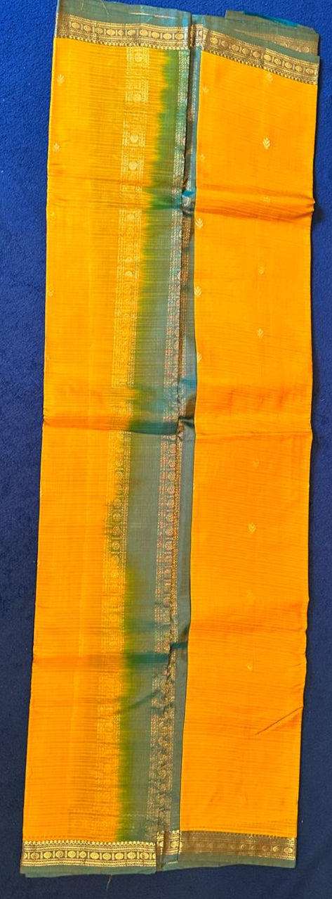 Roopam Silk - Mustard Yellow with Green is backordered and will ship as soon as it is back in stock.