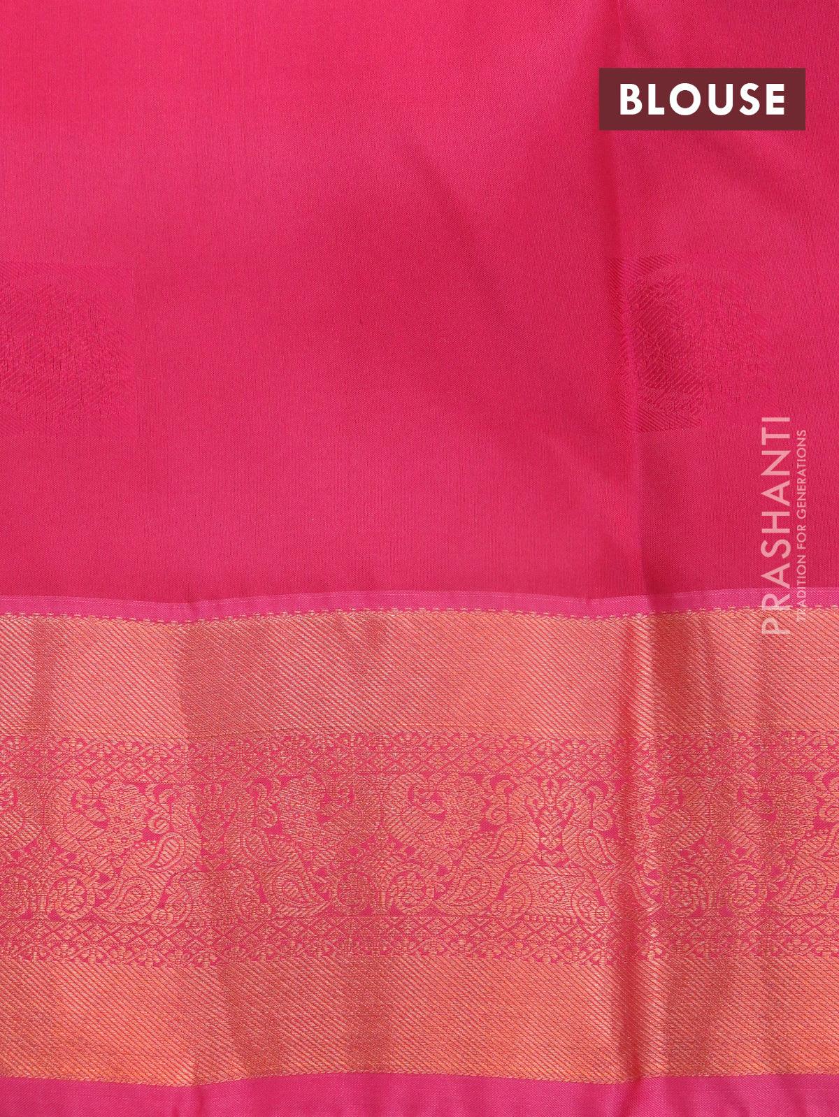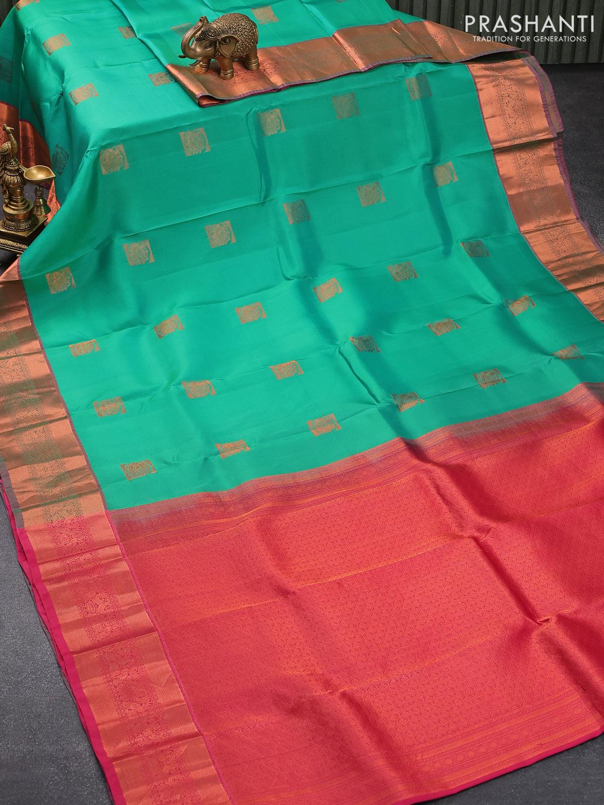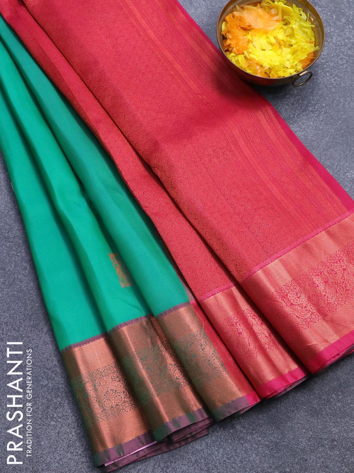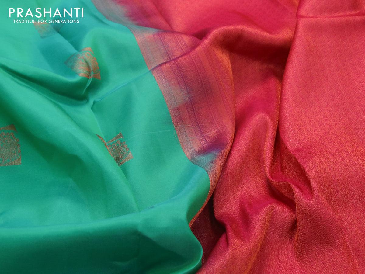 Roopam silk saree teal green and pink with copper zari woven annam buttas and copper zari woven border