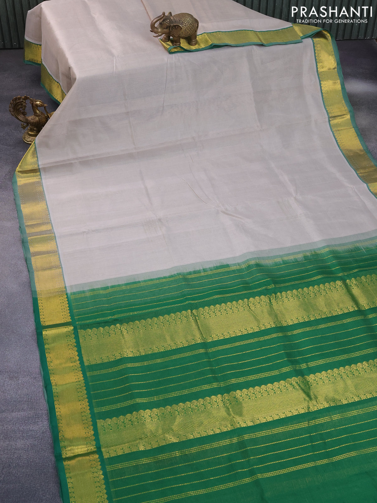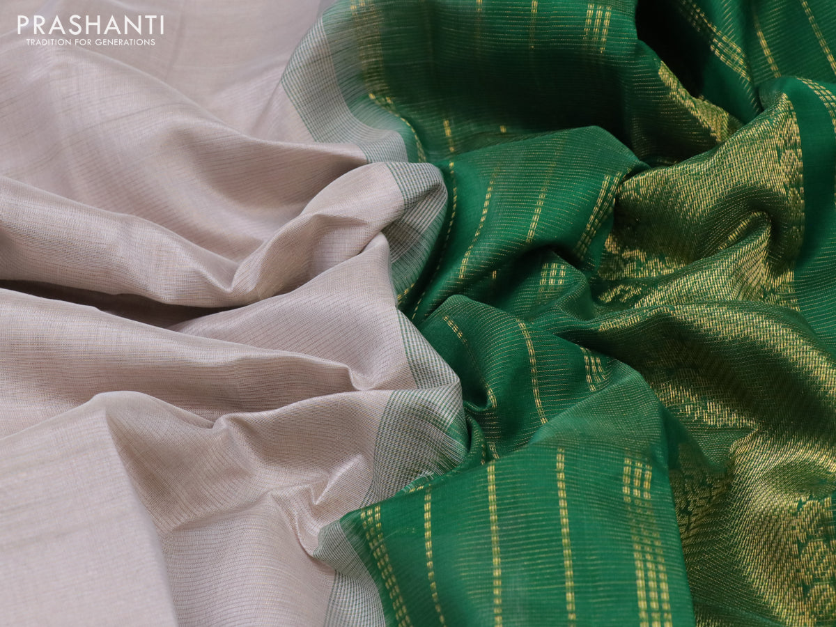Silk cotton saree pastel grey and green with allover vairaosi pattern and zari woven border