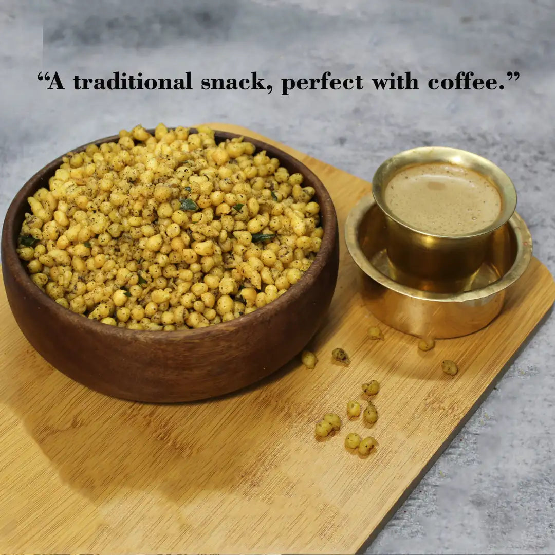 Experience the perfect savory crunch with True Traditions-Sri Varaha Foods' Karaboondhi, a traditional South Indian snack crafted from high-quality Bengal Roasted Gram Flour, flavored with pepper and salt. This crispy boondi delivers a burst of authentic flavors, perfectly balanced for a delightful snacking experience.